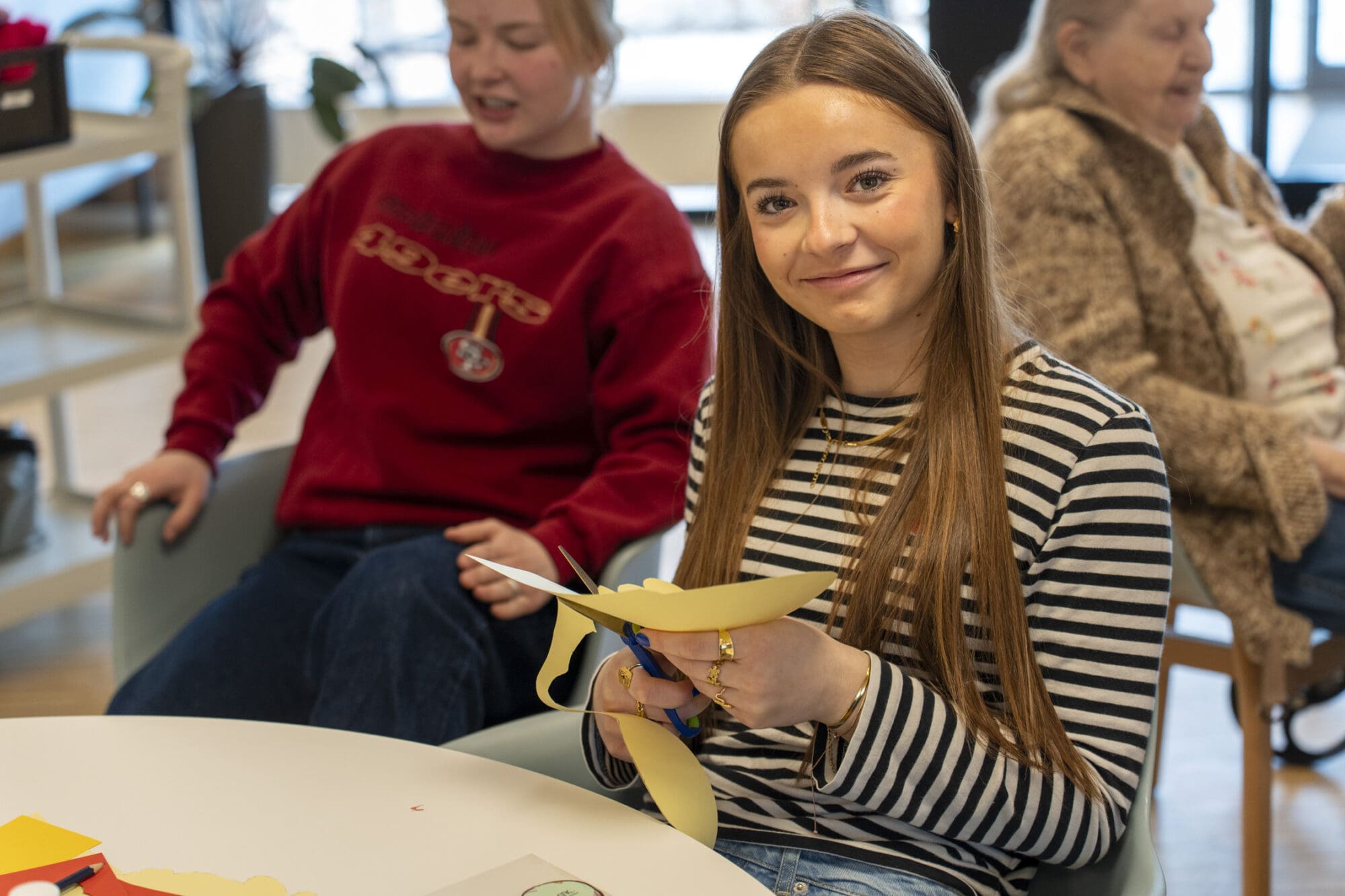 7 skønne og modige unge efterskoleelever været på besøg ved det lokale plejehjem i Hammel. De har i fællesskab dannet en lille forening med fokus på at skabe relationer til de lokale plejehjemsbeboere. De har hver især fået tildelt en borger, som de skal besøge en gang i mellem. Det bliver spændende at følge udviklingen i foreningen!
