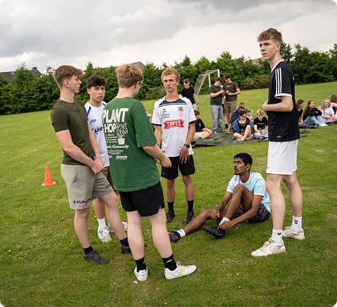 Idrætshallen og fitnesscenteret er altid åbne og kan bruges både i pauser og om aftenen. Skolen har nogle smukke udendørs arealer med boldbaner. Tager vi cyklen er vi hurtigt ude i Frijsenborg-skovene, hvor der er mulighed for at benytte mountainbike-banerne.